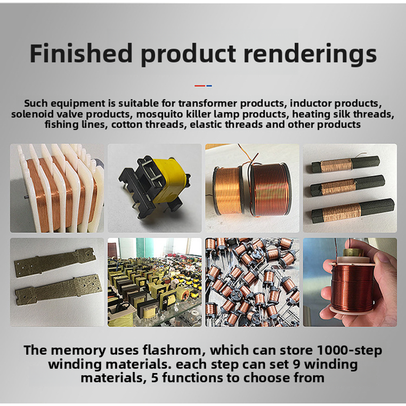 1. This type of equipment is suitable for winding transformer products, inductor products, solenoid valve products, mosquito-killing lamp products, heating wires, fishing wires, cotton wires, elastic wires and other products