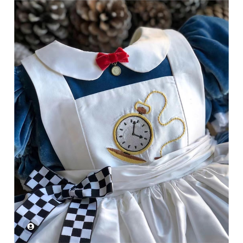 0-12Y Baby Girl Autumn Blue Velvet Alice Embroidery Vintage Princess Ball Gown Dress for Christmas Eid Birthday Causal C69
