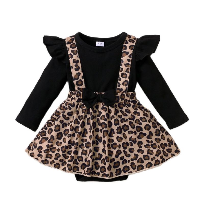 0-18Months Newborn Baby Girl Dress with Bow Long Sleeve Leopard Dresses Onesie Clothing Autumn Infant Fashion Cute Jumpsuit