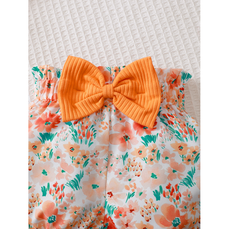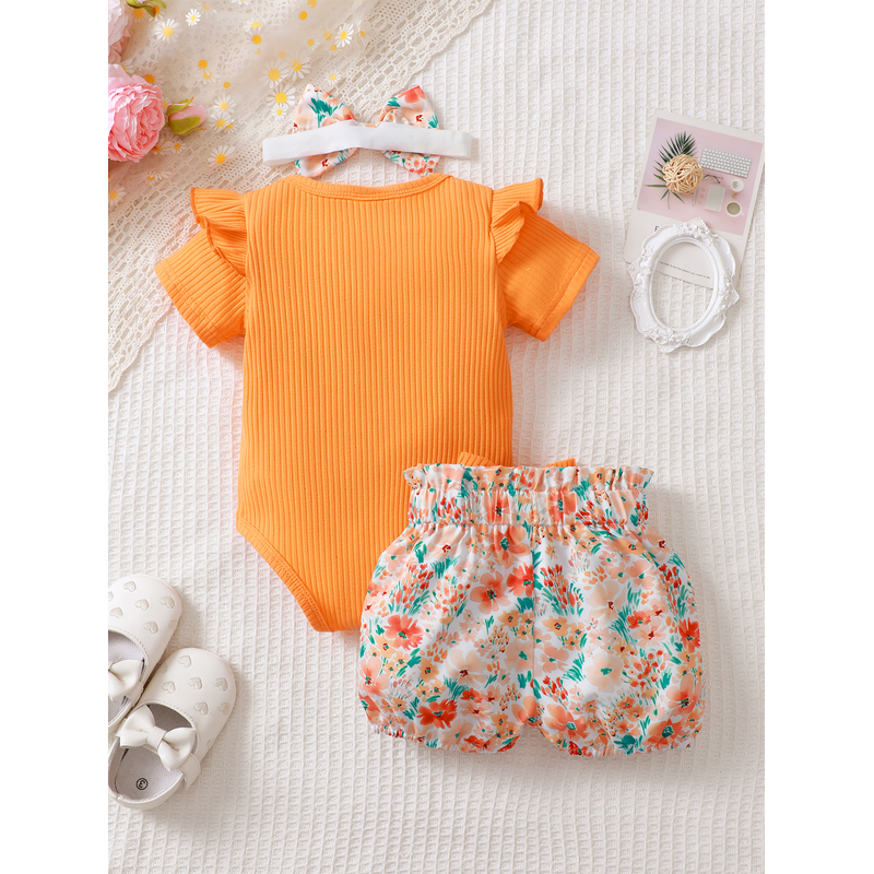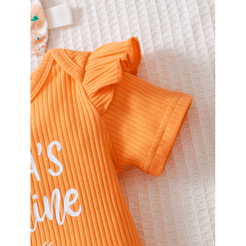 0-2 Year Old Newborn Girl Baby Summer Cotton Short Sleeved Headband Top With Letter Print Shorts Bow Three Piece Set