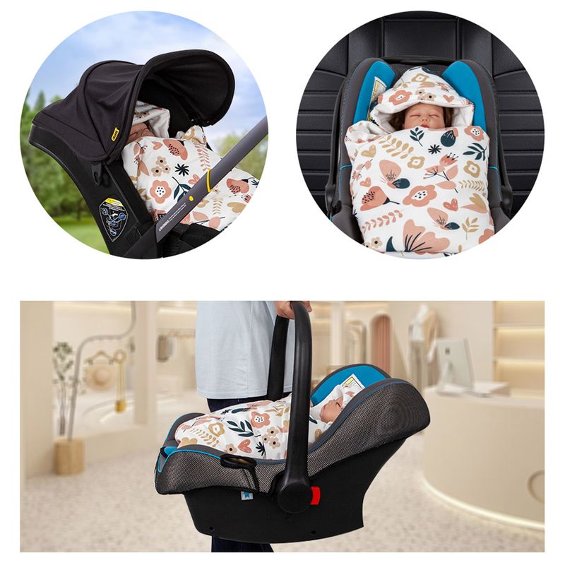 0-3 Months Newborn Baby Blanket In Infant Car Seat Soft Cotton Swaddle Wrap With Windproof Hooded Warm For Outside Travel