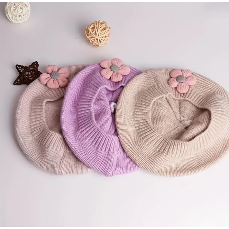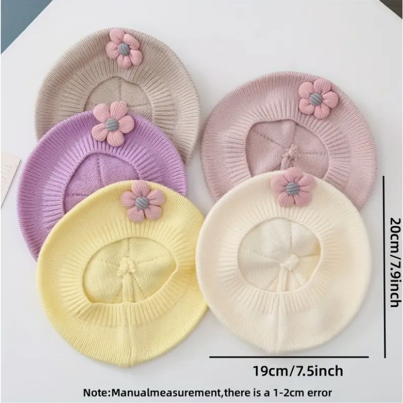 0-4Y Baby Girls' Cute Floral Beret Hat, 100% Cotton Knit Fabric, Lightweight Knit Cap for Infants Stretchable Thanksgiving