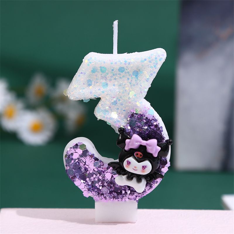 0-9 Number Cartoon Kuromi Purple Digital Party Decoration Handmade Birthday Cake Candle Cake Plugin Insert Cake Inser
