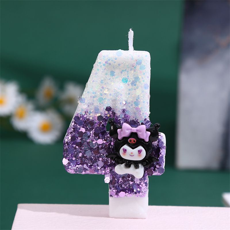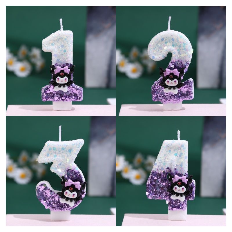 0-9 Number Cartoon Kuromi Purple Digital Party Decoration Handmade Birthday Cake Candle Cake Plugin Insert Cake Inser