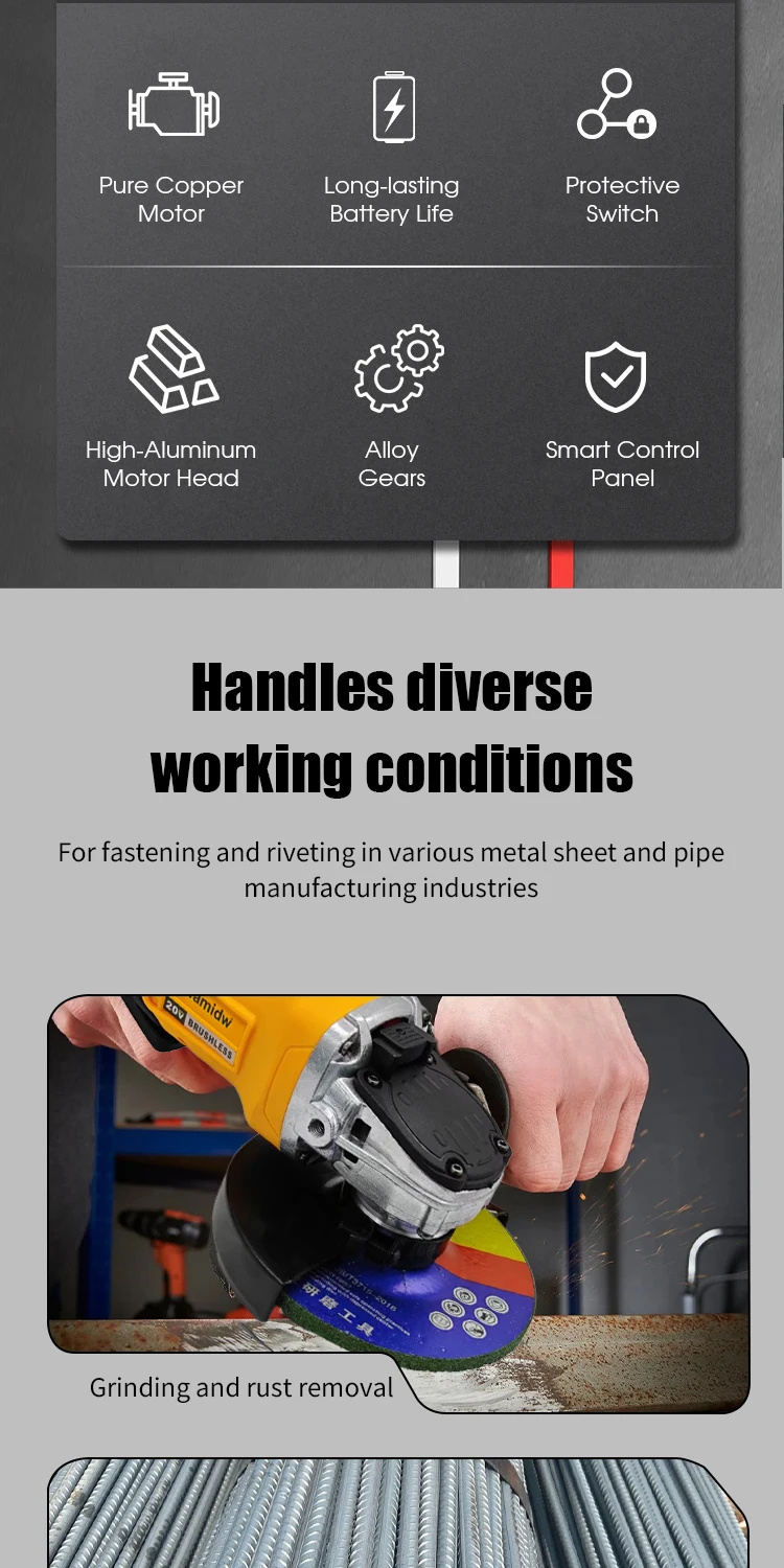 00/125mm Cordless Angle Grinder Tool Only (No Battery) - 10, 000 RPM Brushless Motor, 3-Speed Control, Compact Design | Compatib