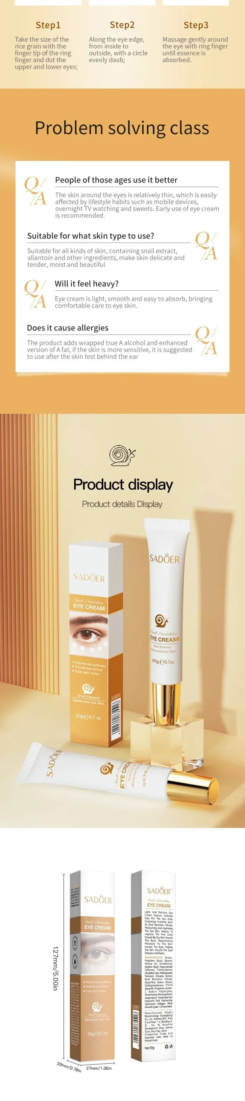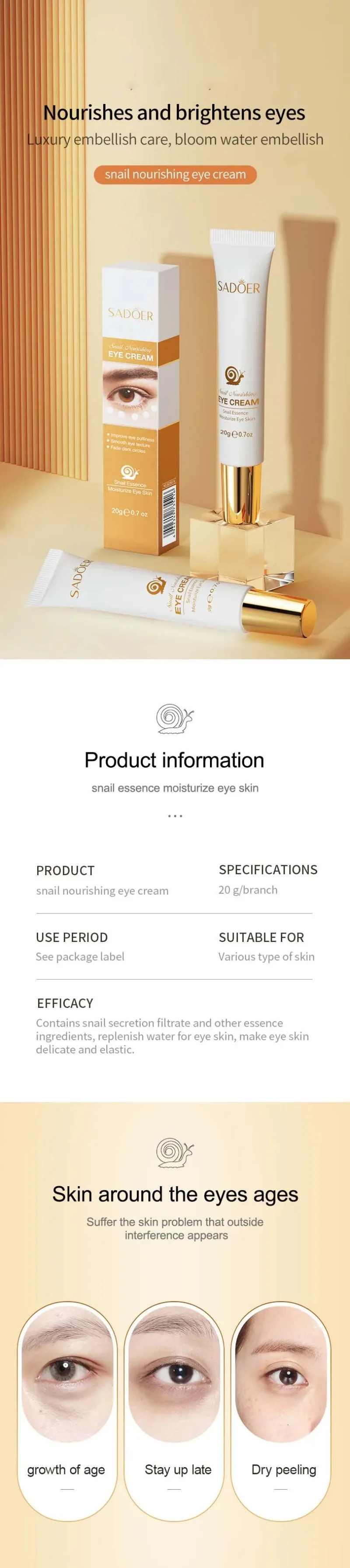 029Eye Bag Removal Cream Moisturizing Anti-Wrinkle Firming Skin Fade Fine Lines Anti Dark Circle Puffiness Eye Care