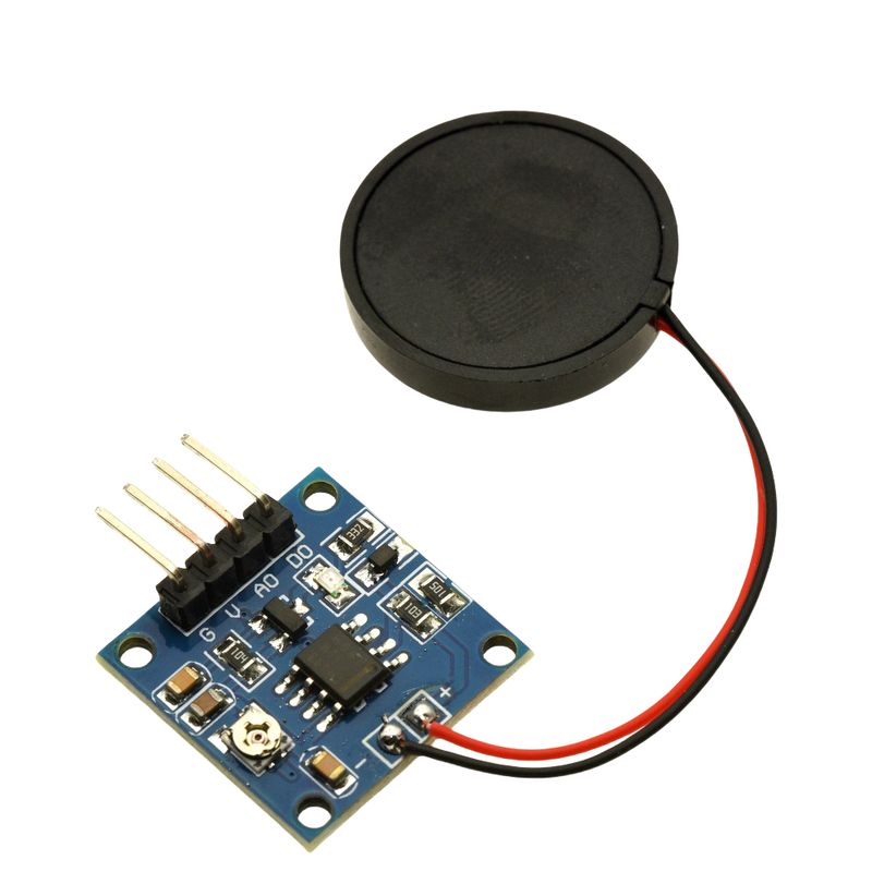Vibration amplitude sensitivity can be adjusted by potentiometer. (Left turn sensitivity is low, Right turn sensitivity is high)The sensitivity can be adjusted to respond with mouth blowing. . . The sensitivity is very high! ! ! ! It can also be adjusted to be tapped by hand for output.Size: 20.5X20.5 (in millimeters)Weight: 4.25 (in grams)