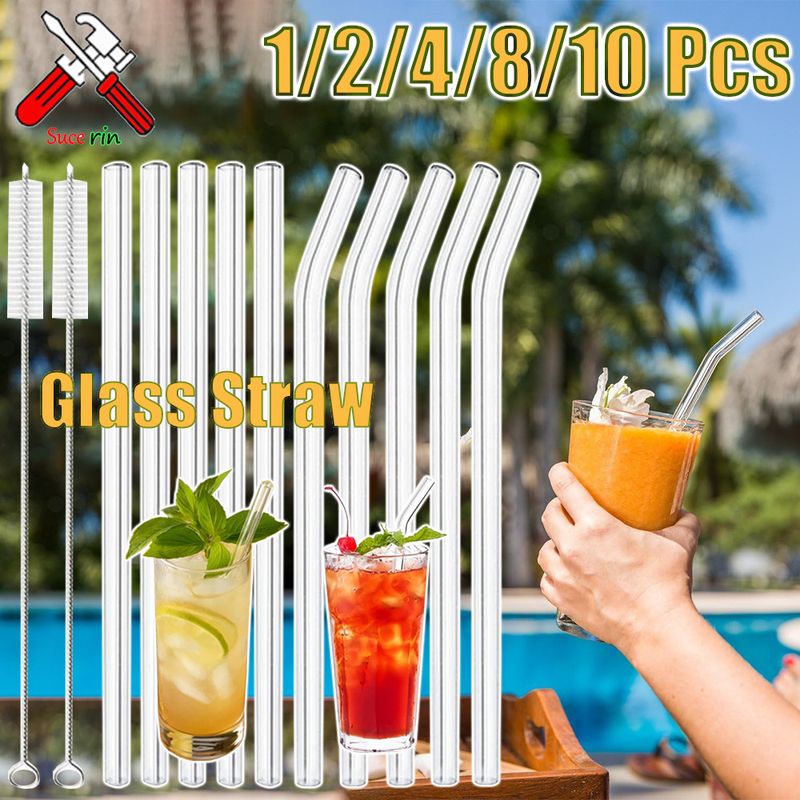 1-10Pcs Reusable Smoothie Glass Straw, Clear Drinking Straws for Smoothie Milkshakes Environmentally Friendly Drinkware Straw