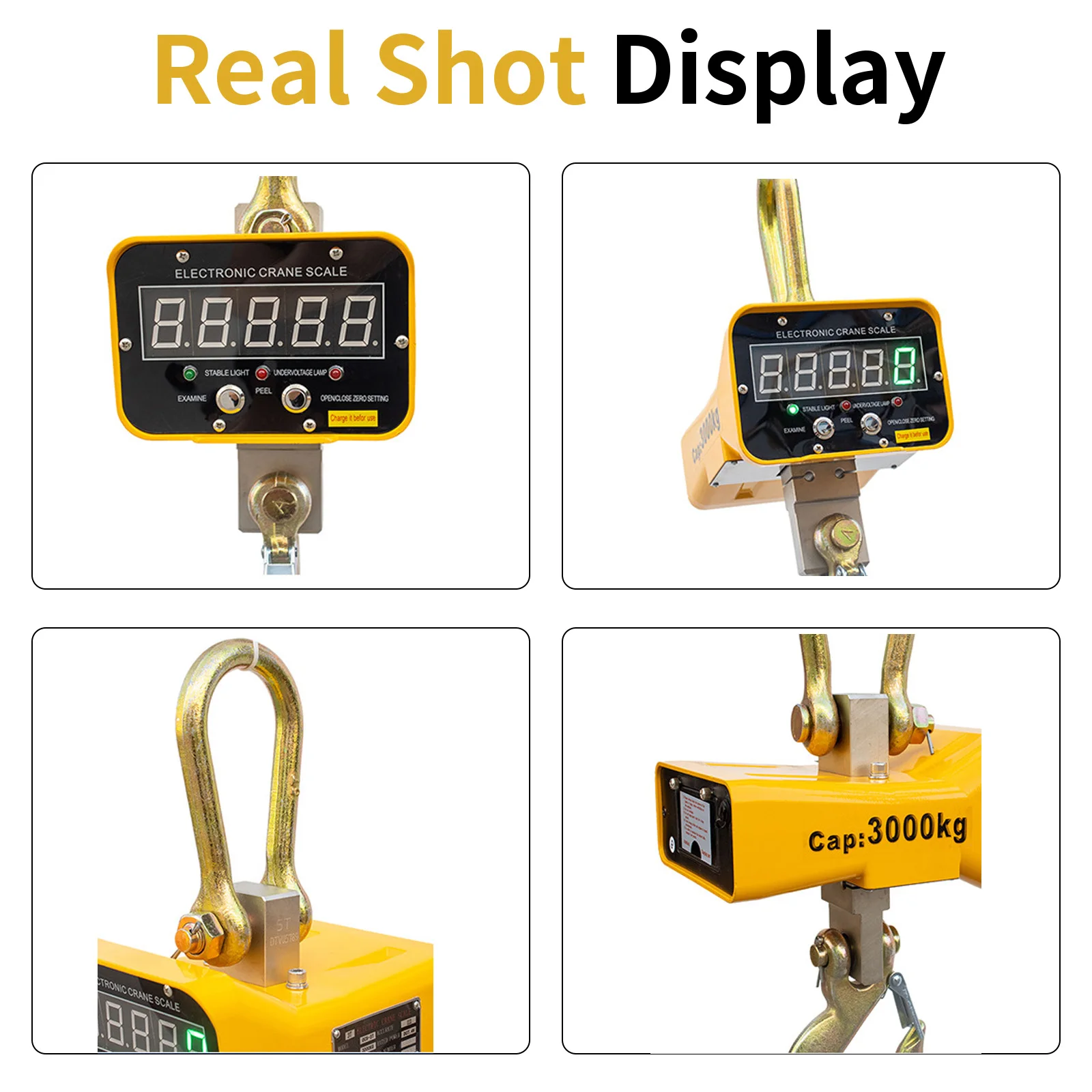 1-10T Industrial Crane Scale Digital Hanging Scale with Visible LED Display Electronic Hook with Remote Control Charging Cable