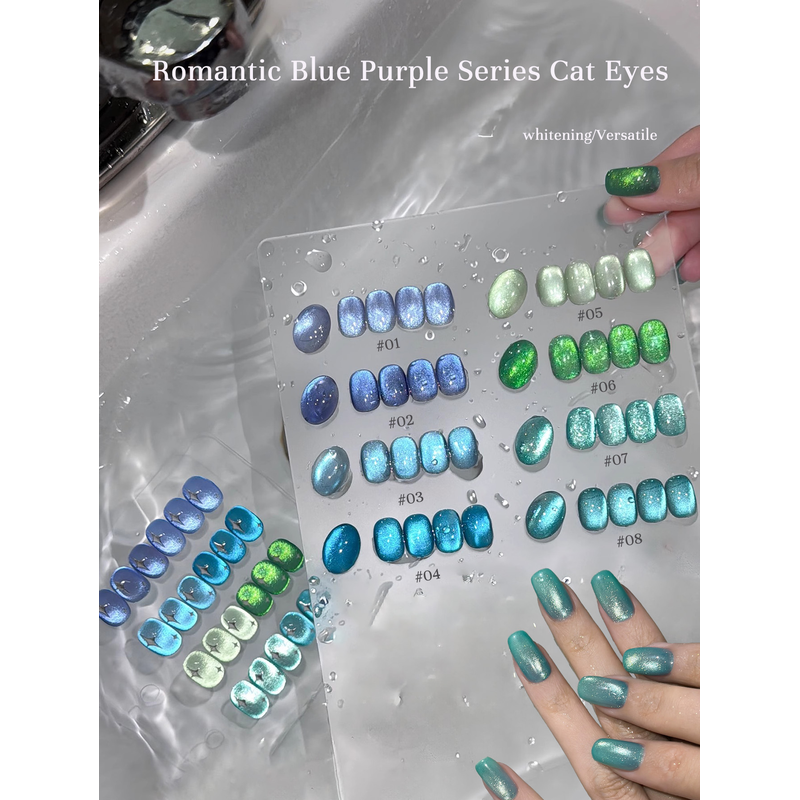 1-12pcs TC Summer Blue Glass Bead Cat Eye Gel Nail Polish Flash White Spar Nude Color Magnet Nail Art Gel Salon Christmas Nails