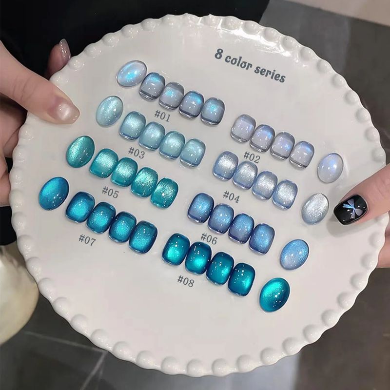 1-12pcs TC Summer Blue Glass Bead Cat Eye Gel Nail Polish Flash White Spar Nude Color Magnet Nail Art Gel Salon Christmas Nails