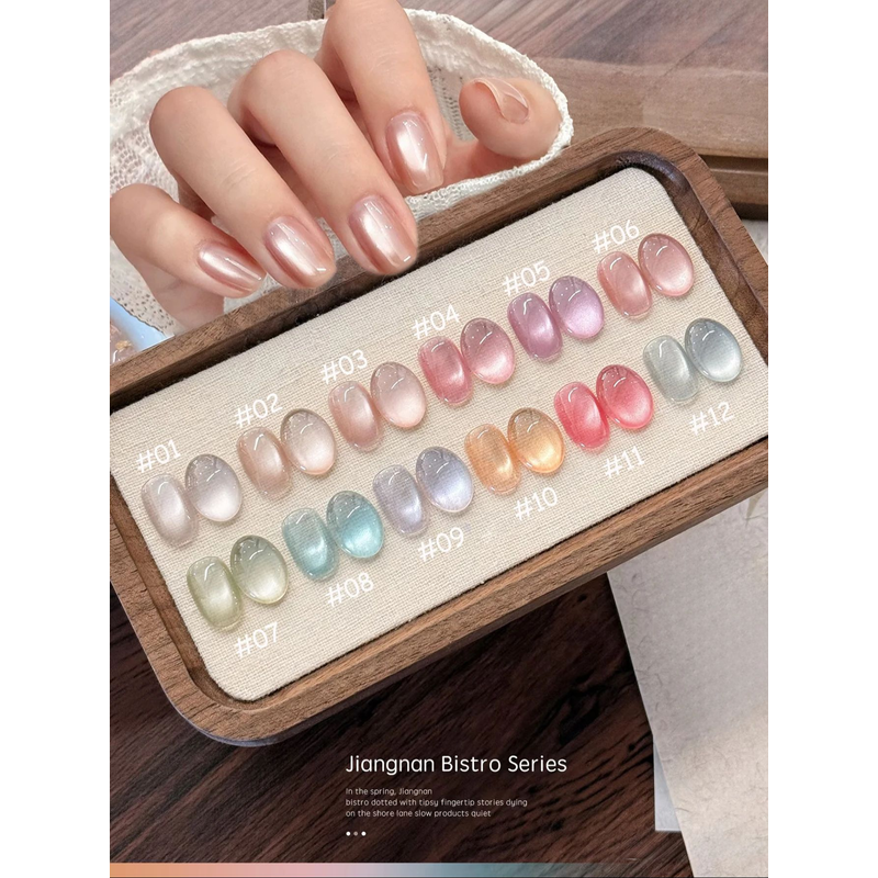 1-12pcs ZH Spring/Summer Ice Transparent Sweet Wine Glass Beads Cat Eye Nail Polish Gel New Flashy Popular Pink Nail Supplies