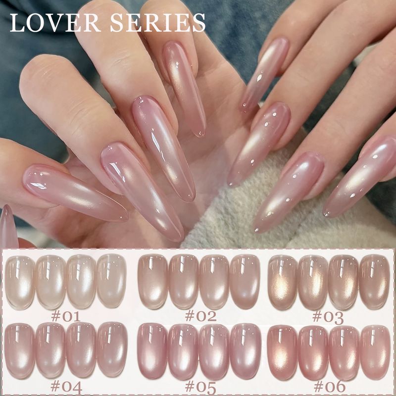 1-12pcs ZH Spring/Summer Ice Transparent Sweet Wine Glass Beads Cat Eye Nail Polish Gel New Flashy Popular Pink Nail Supplies