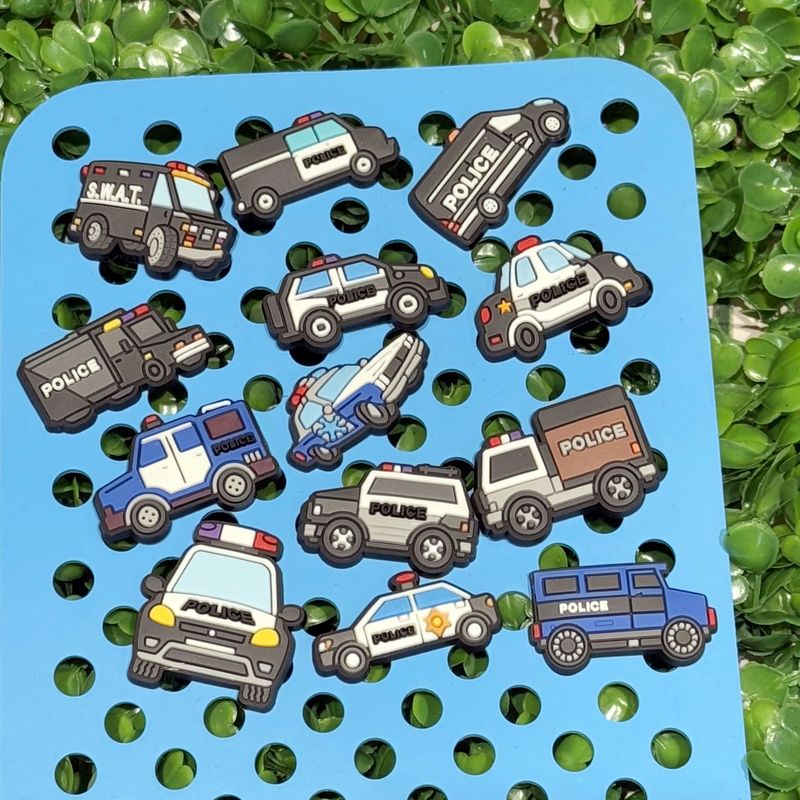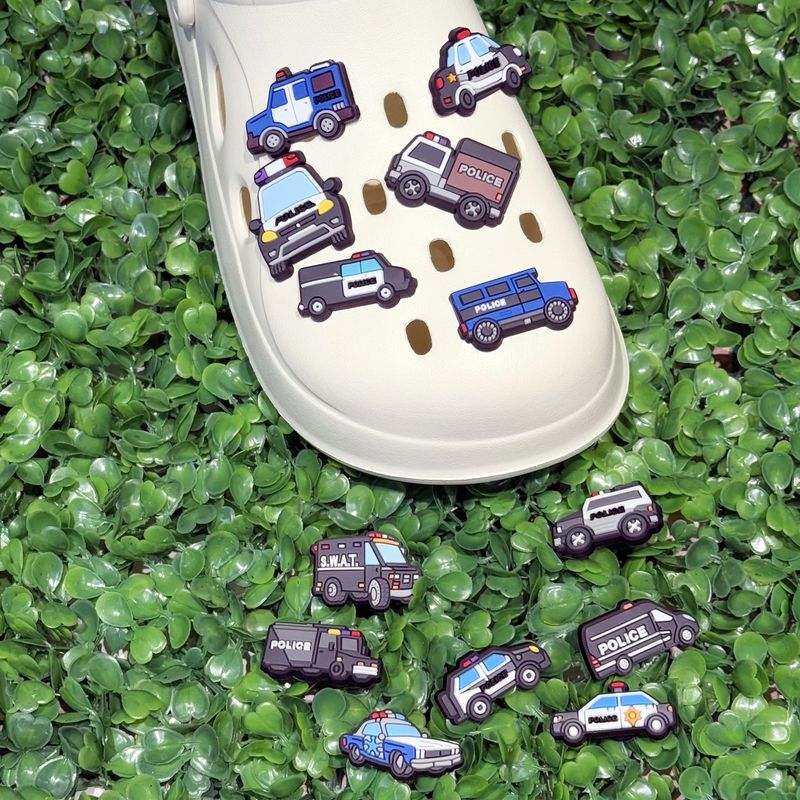 1-13Pcs Mix Cool Cars PVC Boys Girls Shoes Charms Police Buckle Clog Decorations Fit Holiday Present