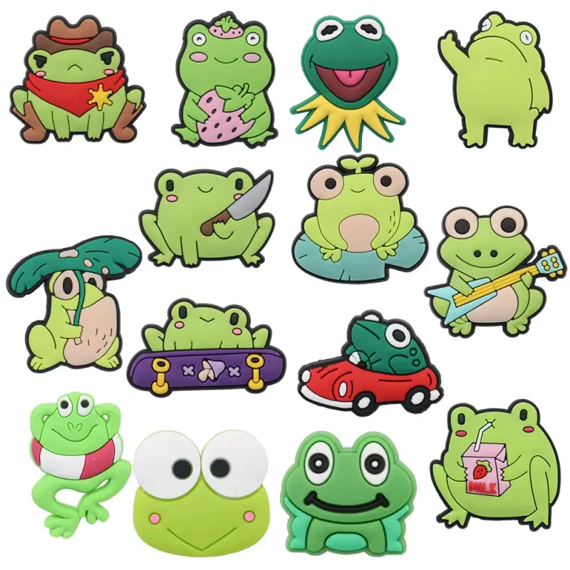 1-14pcs Cute Animal Green Frog Garden Shoe Charms PVC Shoe Decoration Buckle Clog For Wristbands Women Girls Boys Hot Gift Gift