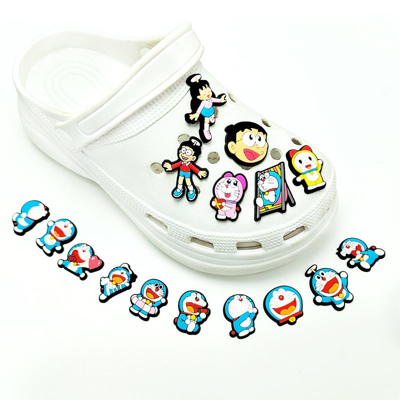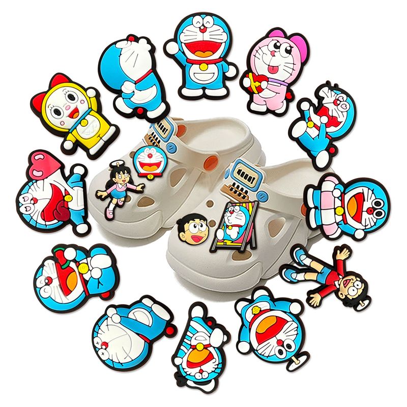 1-16pcs Cartoon Doraemon Shoe Charms for Clogs Sandals Decoration Cartoon Anime Shoe Accessories Charms Friends Gifts