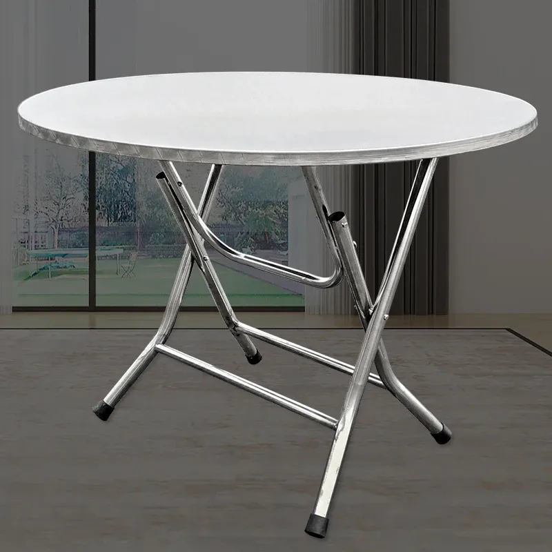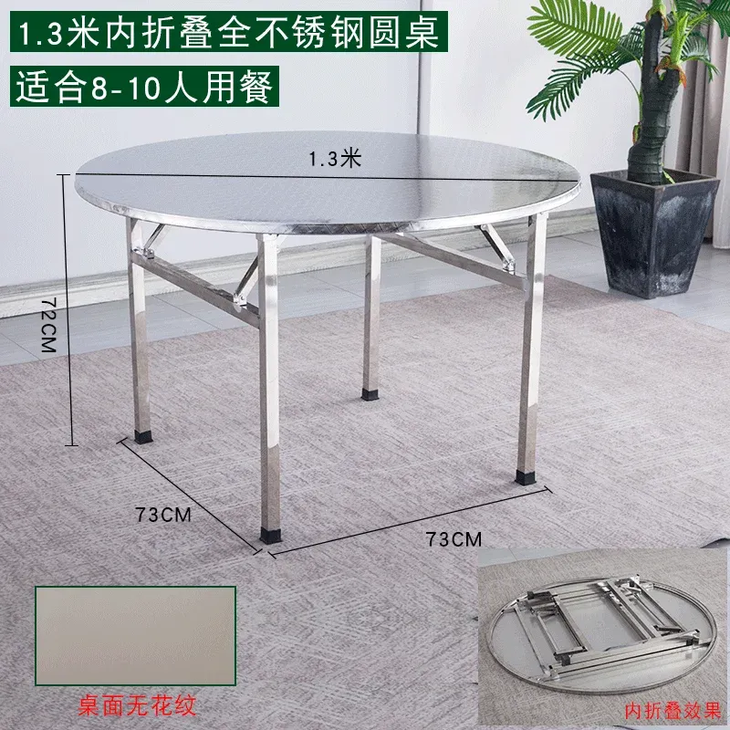 1.2 meters 1 stainless steel folding table dining table household eating round round table top can be folded activity round tabl