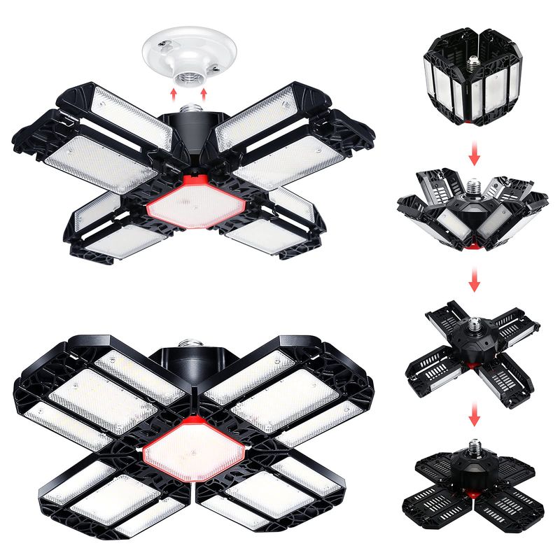 1-2 PCS Deformable LED Bulb Garage Light with 12 Adjustable Panel LED Night Lamp E26/E27 Ceiling Lighting for Workshop Warehouse