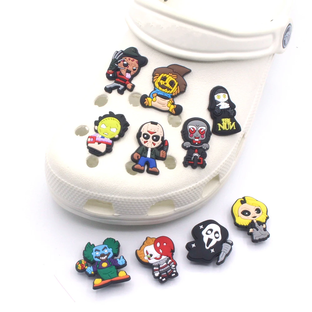1-20Pcs Halloween Shoes Charms PVC Cartoon Shoe Decoration Accessories Buckle Fit Clog Sandal Wristband Kids Party Gifts