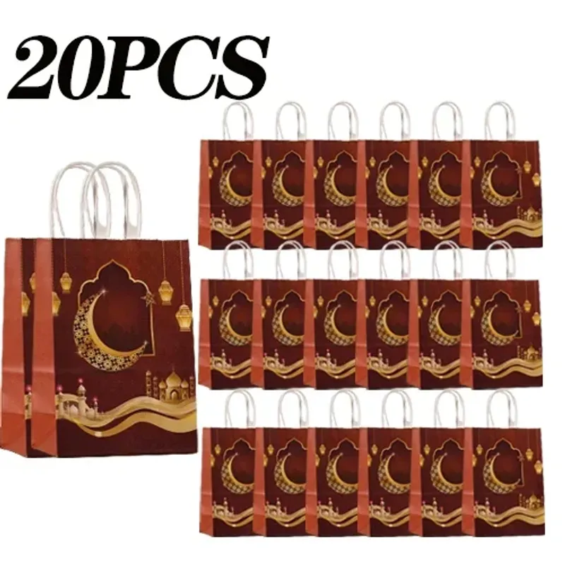 1-20PCS Ramadan Gift Bags Paper Eid Mubarak Ramadan Gift Box 2025 Islamic Muslim Party Candy Packing Bag Decor Supplies