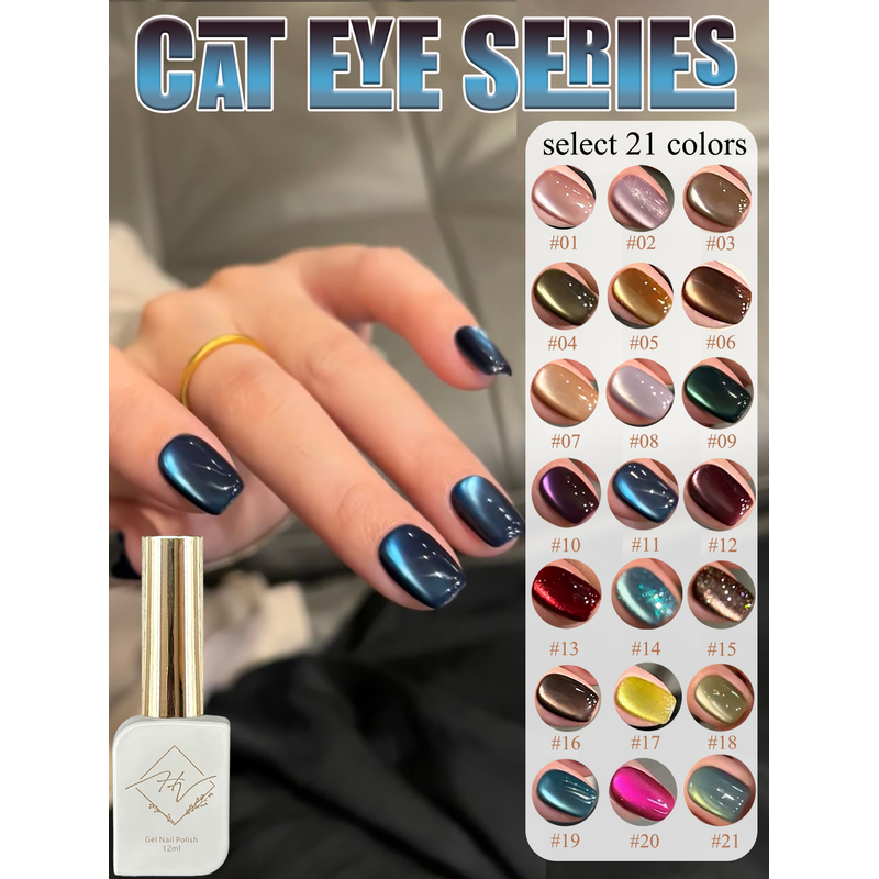 1-21pcs ZH Popular Blue Ink Cat's Eye Gel Nail Polish Spring Summer Fashionable Color Flash Glass Beads Cat's Eye Nail Salon