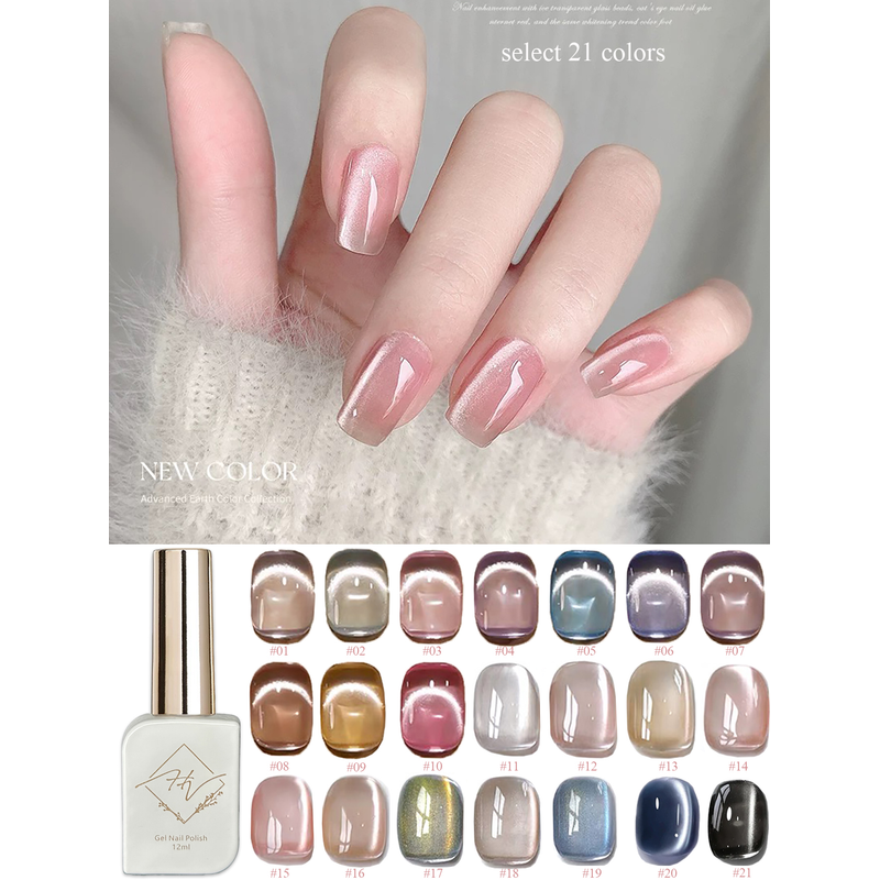 1-21pcs ZH Popular Blue Ink Cat's Eye Gel Nail Polish Spring Summer Fashionable Color Flash Glass Beads Cat's Eye Nail Salon