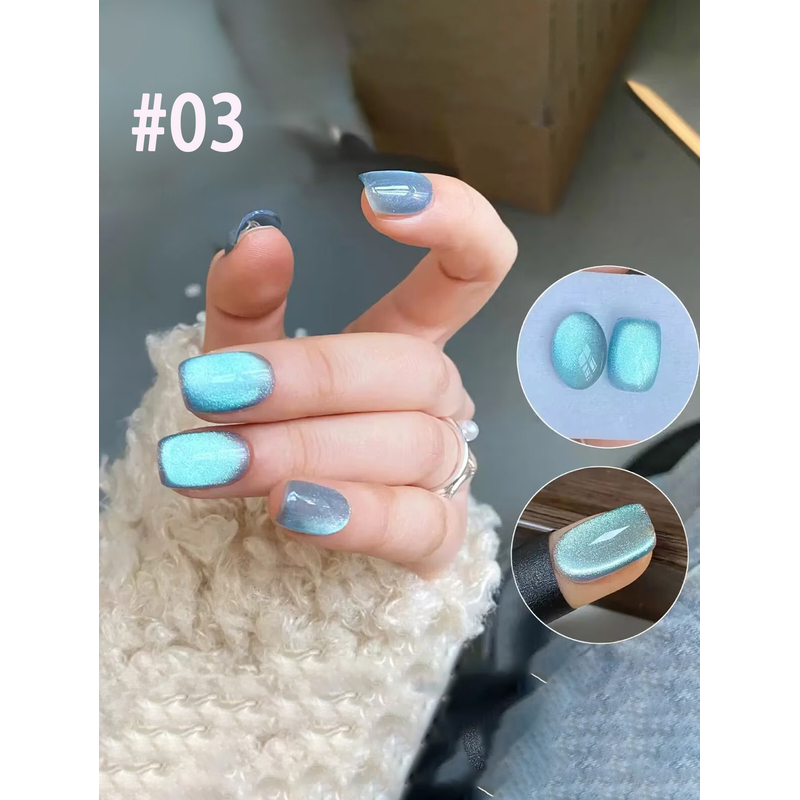 1-21pcs ZH Popular Blue Ink Cat's Eye Gel Nail Polish Spring Summer Fashionable Color Flash Glass Beads Cat's Eye Nail Salon
