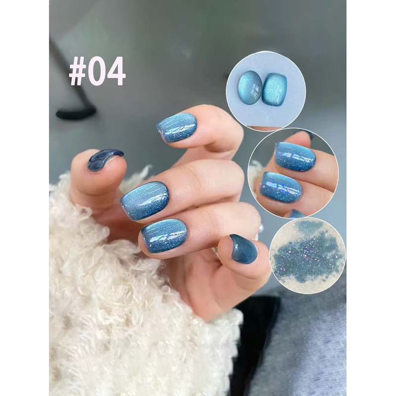 1-21pcs ZH Popular Blue Ink Cat's Eye Gel Nail Polish Spring Summer Fashionable Color Flash Glass Beads Cat's Eye Nail Salon