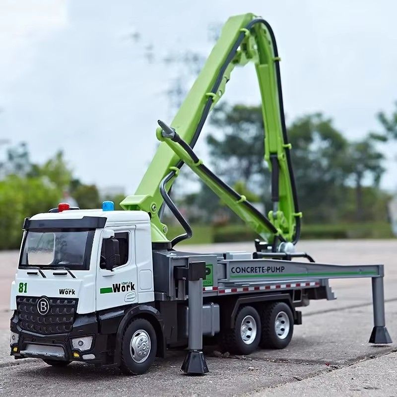 1:24 Electric Flatbed Trailer Cement Pump Truck Model Toys Diecast Alloy Car Doors Opened Sound Light Vehice Children's Boy Gift