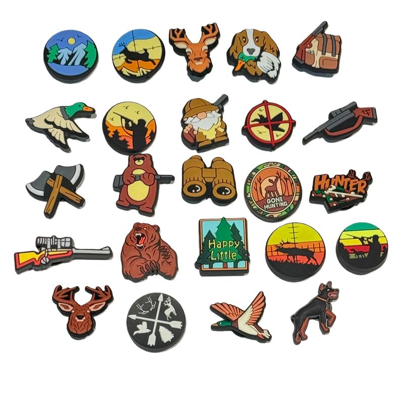 1-24Pcs Hunter Deer Bird PVC Shoe Buckle Charms Hunting Fowling Piece Adult Shoe Accessories DIY Backpack