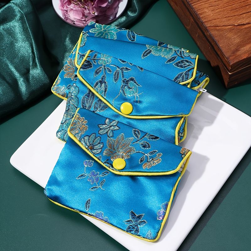 1-3 Pcs Rectangle Flower Pattern Brocade Zipper Jewelry Bag Gift Fine Packaging Bag Jewelry Bracelet Cloth Bag Packaging Display