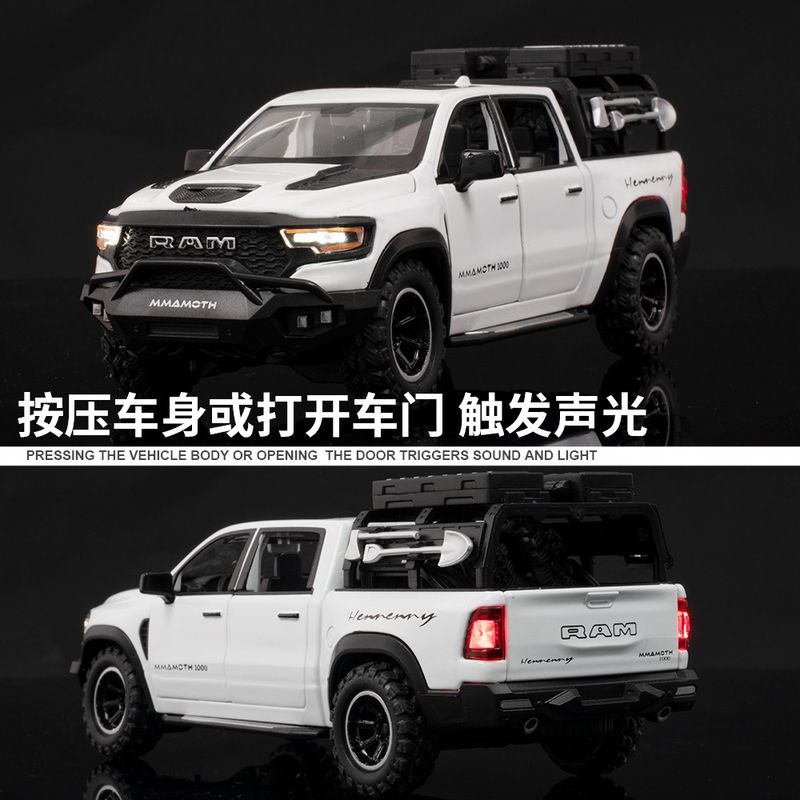 1:32 Dodge RAM 1000 TRX Mammoth Picku Alloy Car Model Sound And Light Pull Back Children's Toy Collectibles Birthday Gift