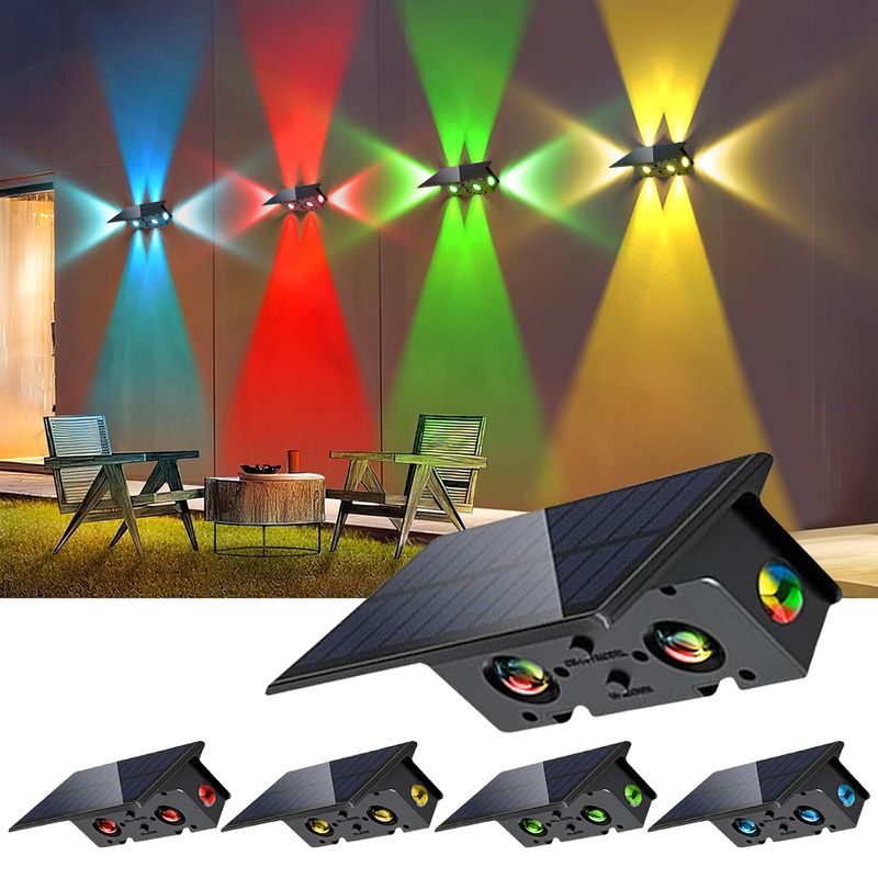 Warm White & RGB Wall Solar Lights: Solar Wall lights outdoor make your house brighter than before. Press the ONOFF switch to cycle through light settings to choose your favorite one.The solar Wall light offers 8 steady light modes (warm white, red, green, blueyellow, cyan, purple) and RBG breathing light mode. The up-down mode can be used on open and high courtyard walls. Breathing RGB and Warm White mode is perfect for creating a romantic atmosphere and is a great choice for patio poolside stair decor at wall, parties, festivals, holidays.