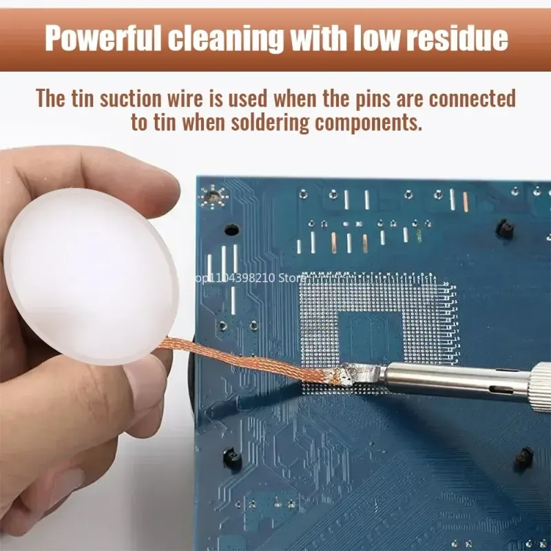 1. With low residue design-- This solder braid helps clean spare solder on the pin away to avoid short circuit, especially great for small, hard to reach areas.
