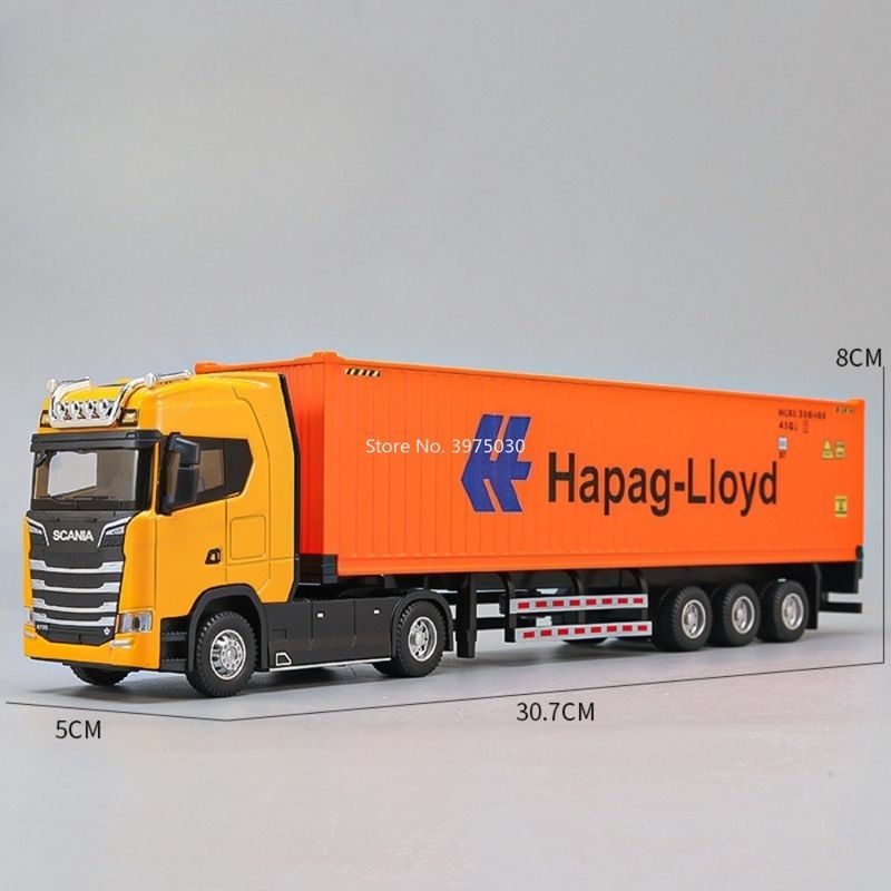 1:50 Alloy Heavy Trucks Toys Models Cars Container Vehicles Light Music Miniature Transport Car Rubber Tires Kids Gifts
