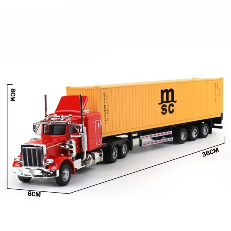 1:50 American Trailer Transport Vehicle Diecast Alloy Front End Container Truck Models Toys Sound Light Cars for Boys Xmas Gifts