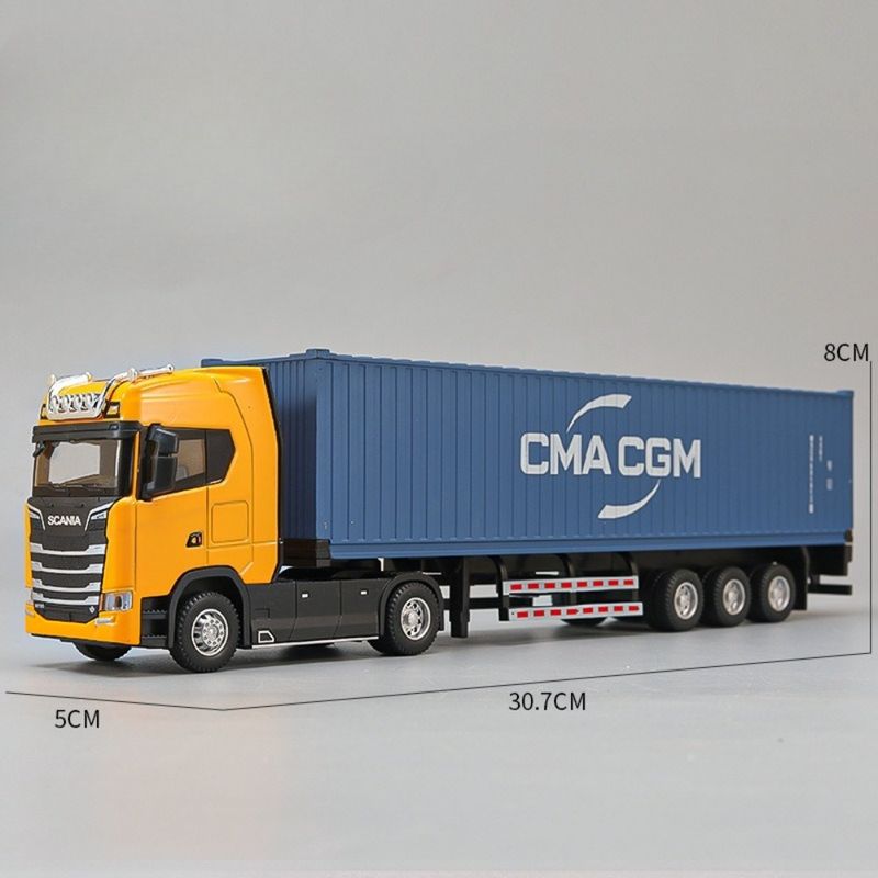 1:50 American Trailer Transport Vehicle Diecast Alloy Front End Container Truck Models Toys Sound Light Cars for Boys Xmas Gifts