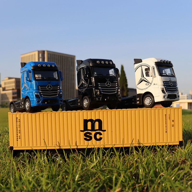 1:50 American Trailer Transport Vehicle Diecast Alloy Front End Container Truck Models Toys Sound Light Cars for Boys Xmas Gifts