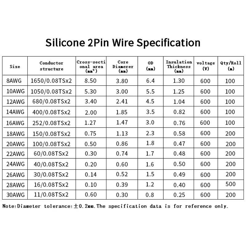 1~50m Flexible Silicone Rubber Cable Copper Wire 2Pins Soft 30 28 26 24 22 20 18 16 14 12 10 8AWG For Car Battery Inverter Motor