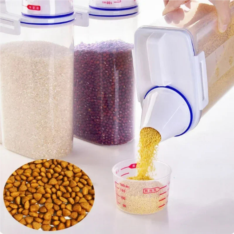 1.5kg/2kg Dog Cat Food Pail Plastic Storage Tank with Measuring Cup Container Moisture-proof Sealed Jar Pet Supplies Accessories