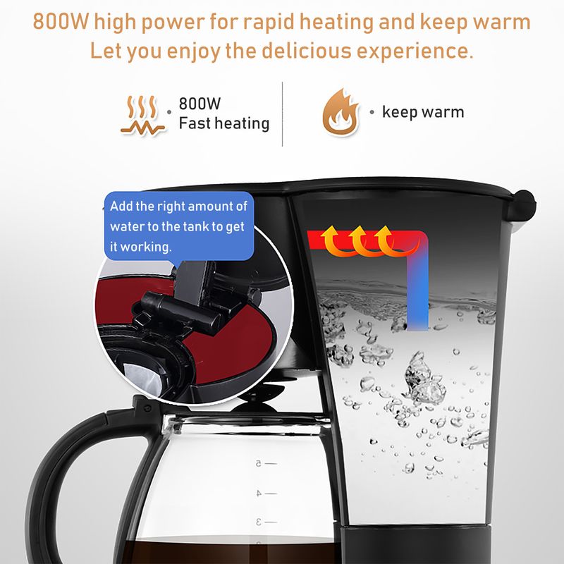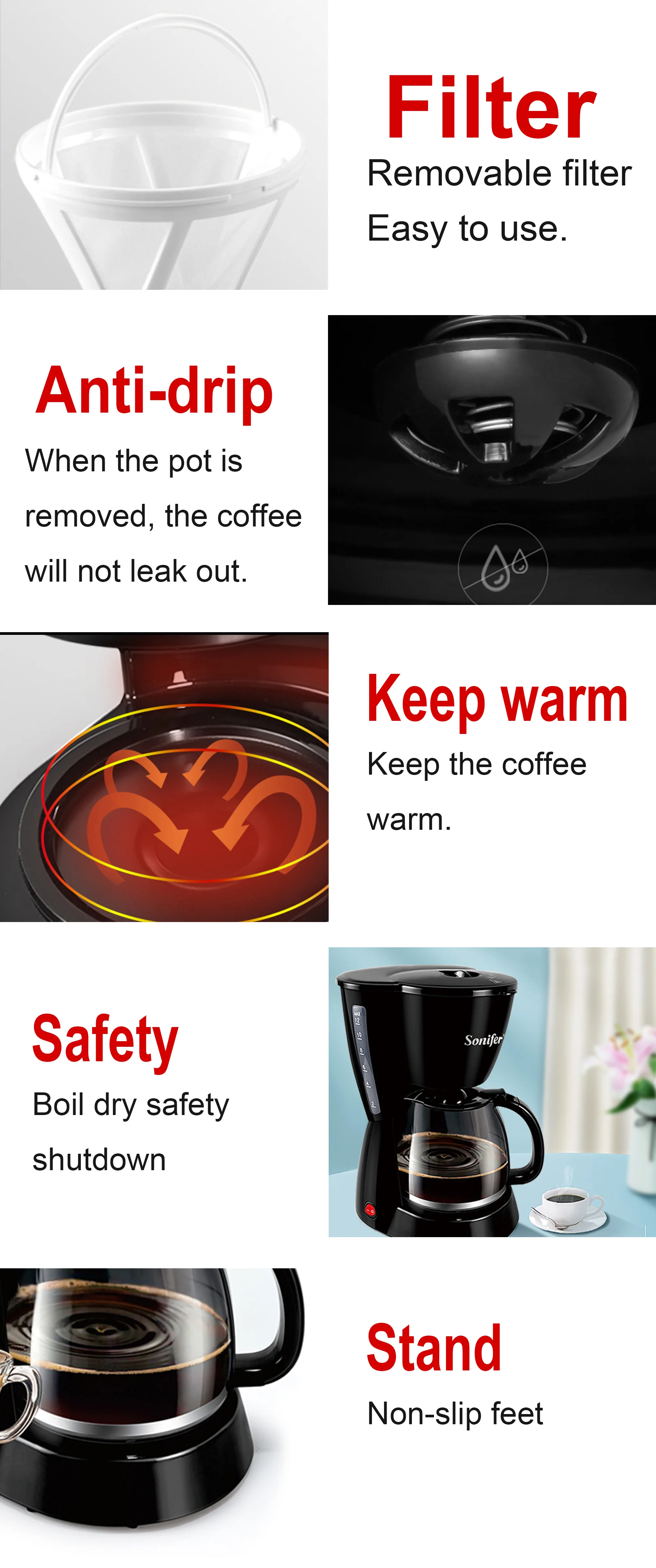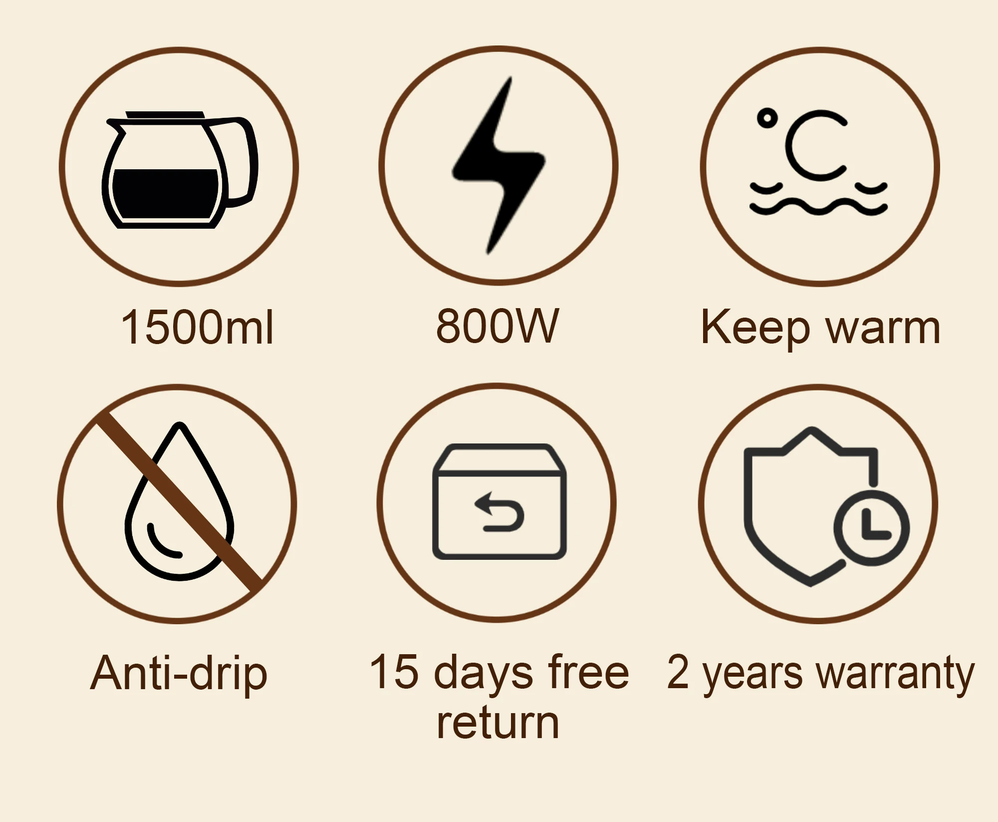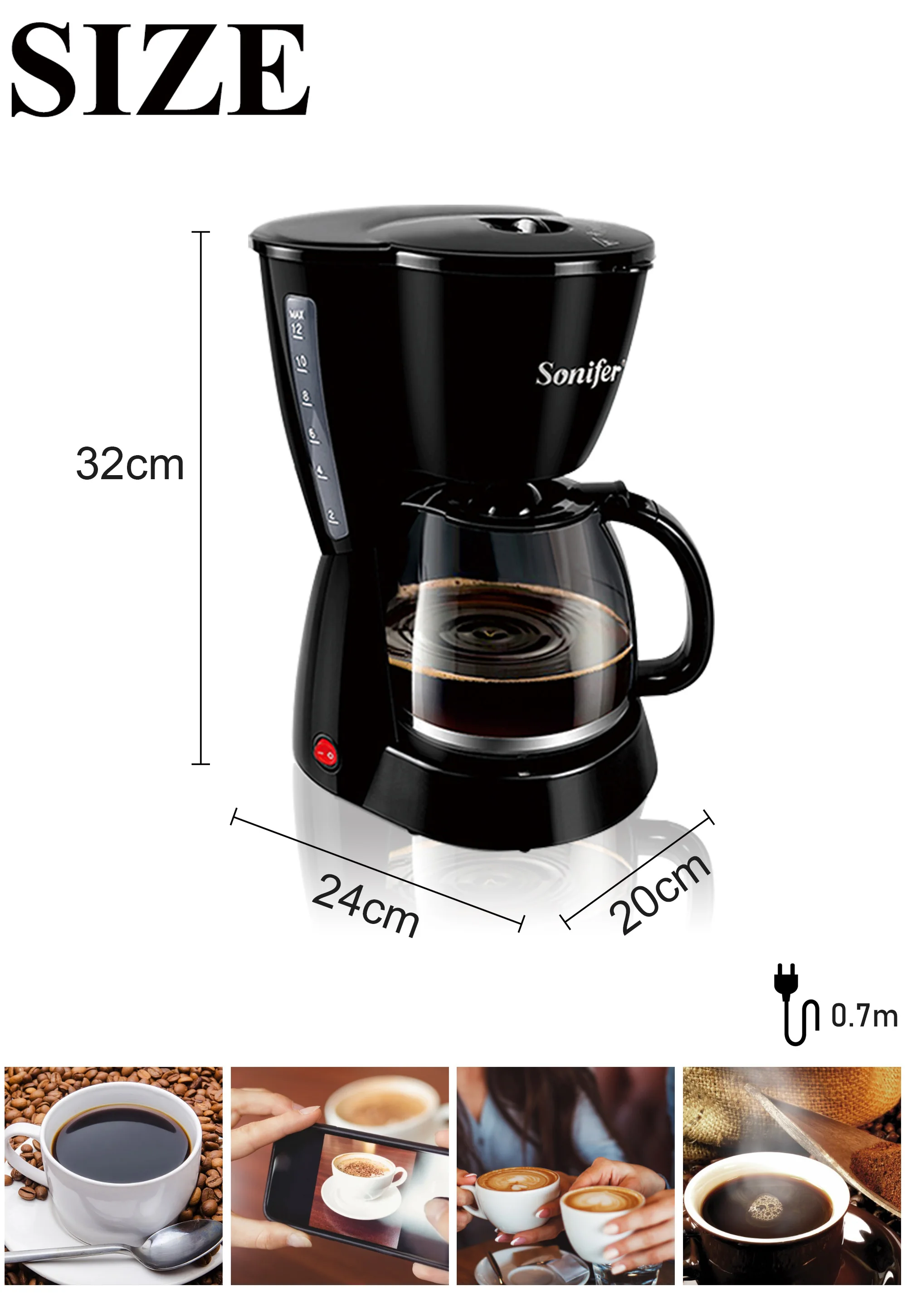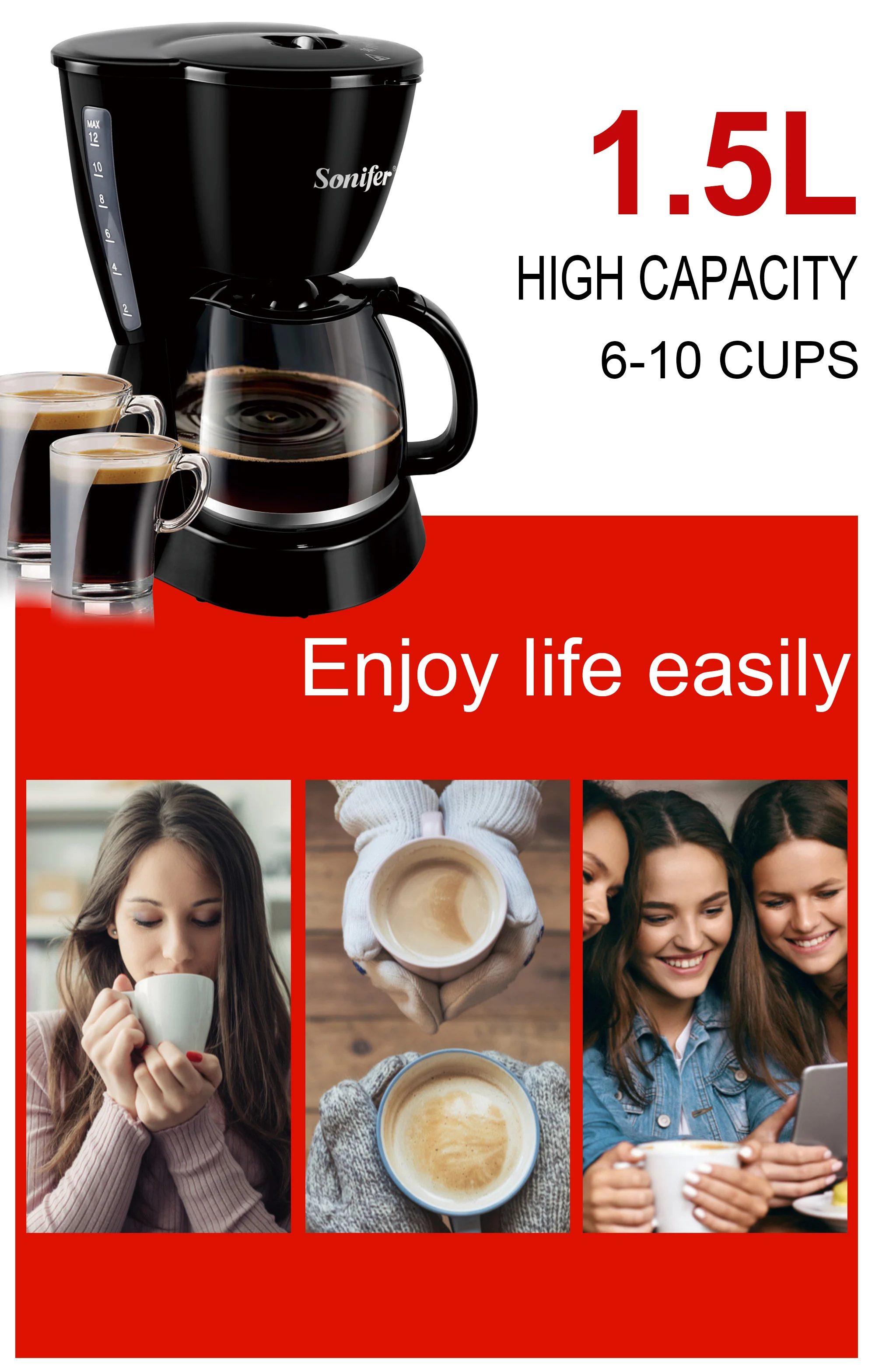1.5L Electric Drip Coffee Maker 800W Household Coffee Machine 15 Cup Tea Coffee Pot Milk Coffee Maker for Gift 220V Sonifer