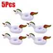1-5Pcs Floating Cup Inflatable Flamingo Drinks Cup Holder Pool Float Bar Coasters Floatation Devices Pink Toy Drink Holder