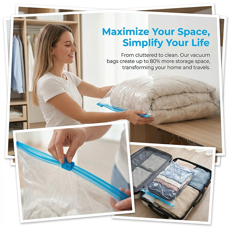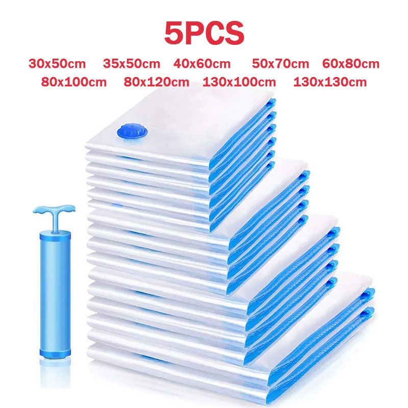 1-5pcs Vacuum Compression Bag Thickened Transparent Clothes Quilt Vacuum Storage Bags Household Sorting Travel Organizer Bags