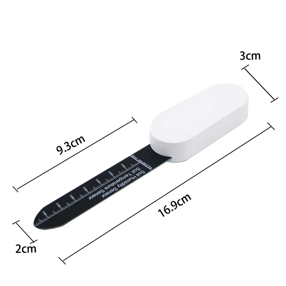 2. Insert the soil moisture sensor at least two-thirds into the ground, with the top fully exposed for accurate readings. Ensure no water is on the sensor before use.