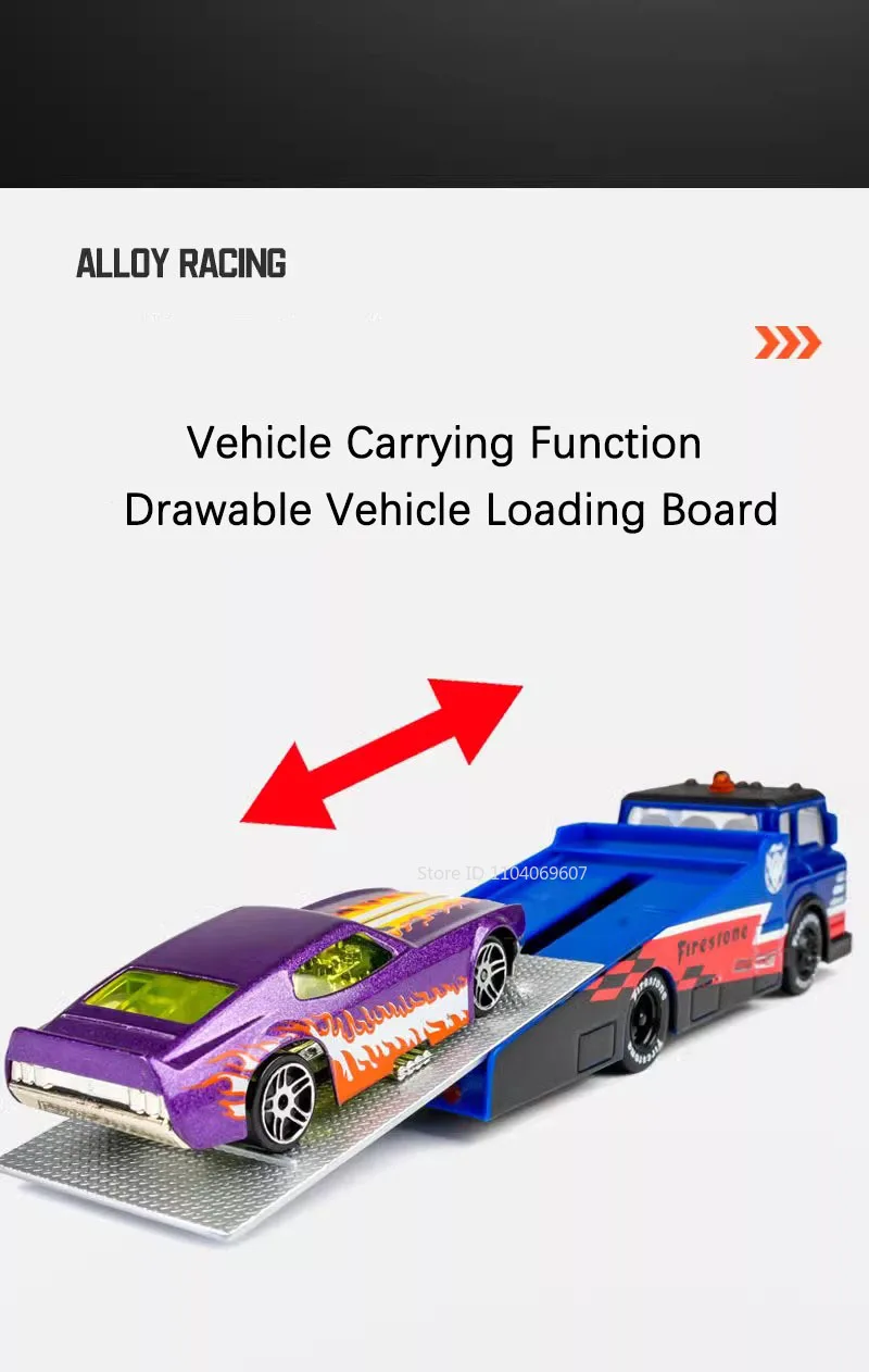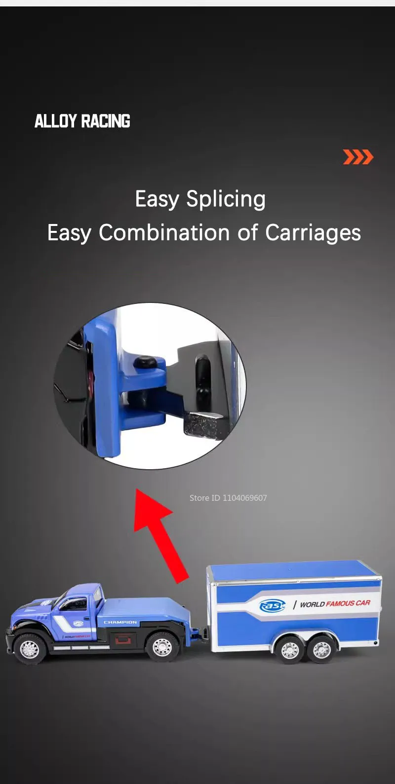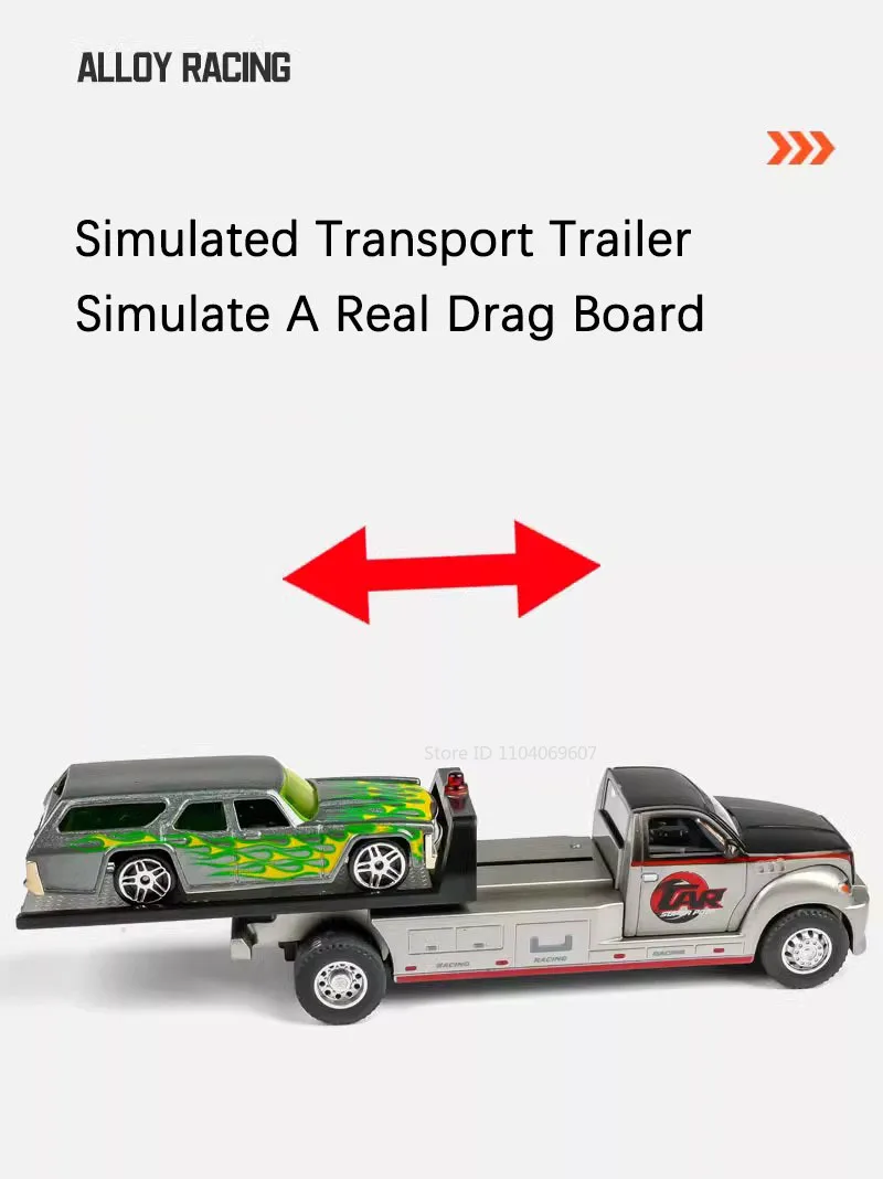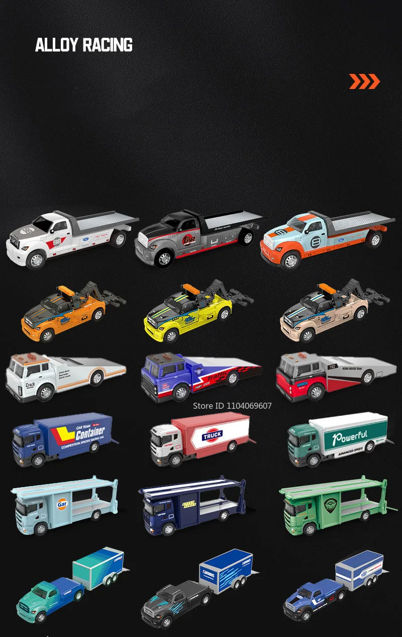 1:64 Scale Container Truck Model Toy Cars Metal Diecast Trailer Pull Back High Simulation Transport Vehicle Toys for Kids Gifts