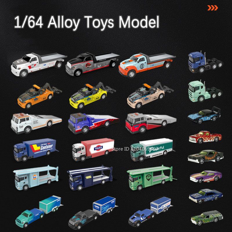 1:64 Scale Container Truck Model Toy Cars Metal Diecast Trailer Pull Back High Simulation Transport Vehicle Toys for Kids Gifts