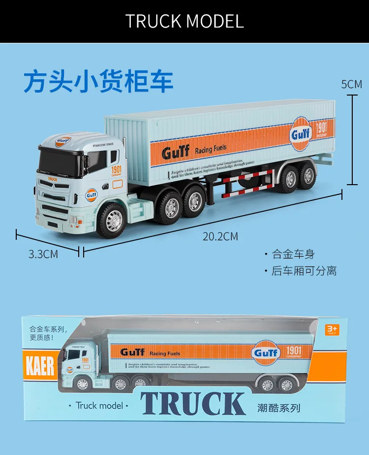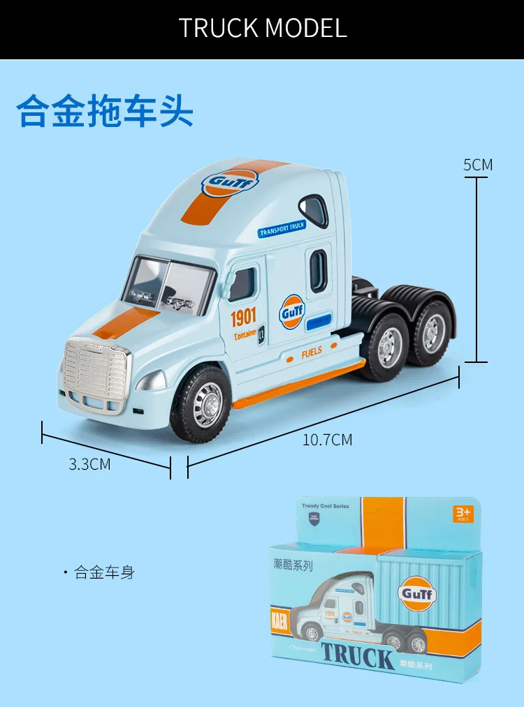 1:64 Small trailer container truck Gulf version simulation alloy car model ornament toy Gift