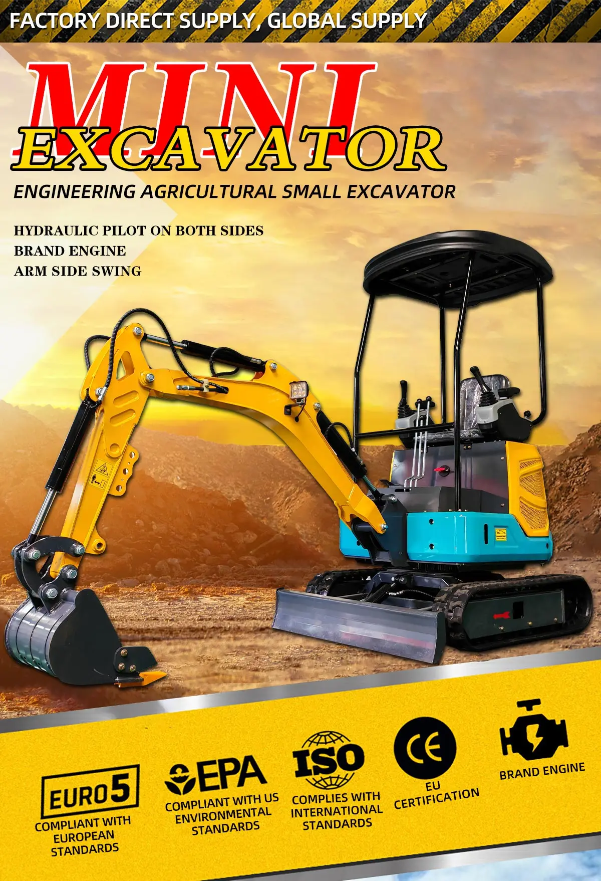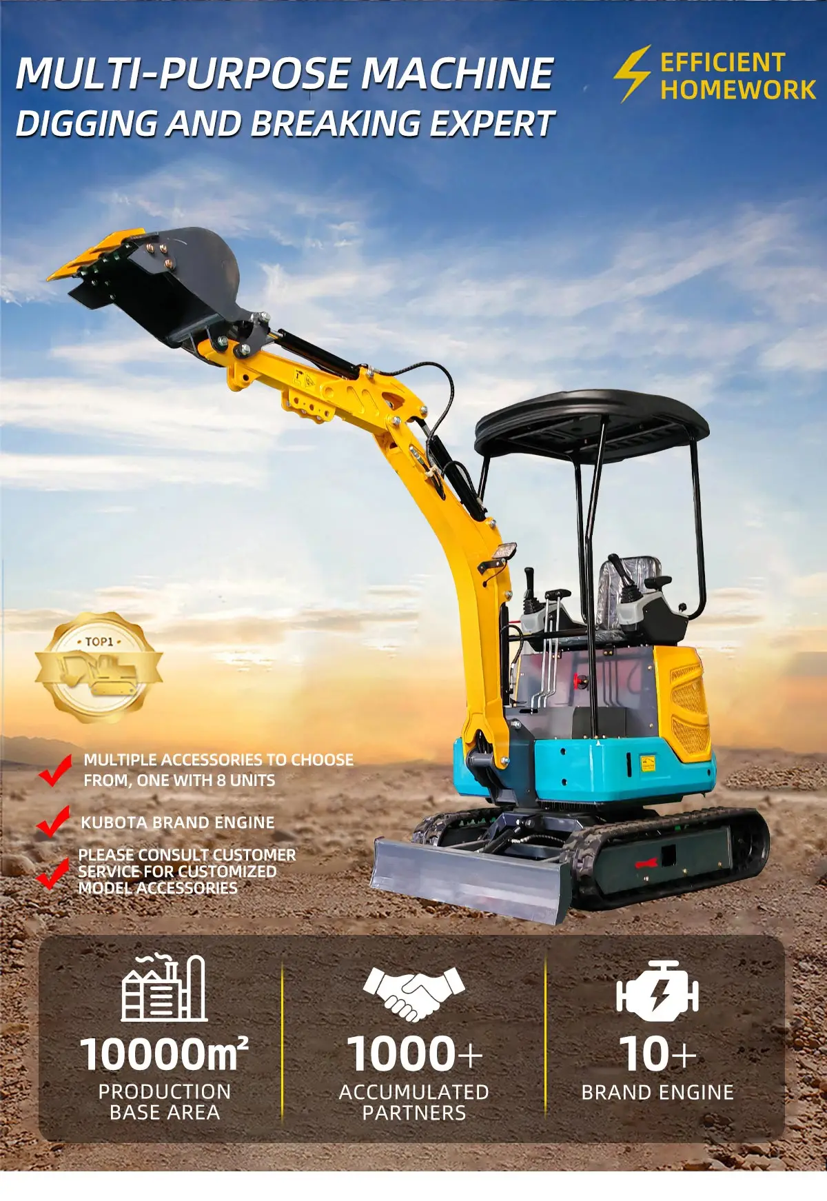 1.8 Ton Kubota Engine Mini Excavator Hydraulic Micro Digger CE/Euro 5/EPA Certified High Power Excavator Free Shipping for Farm