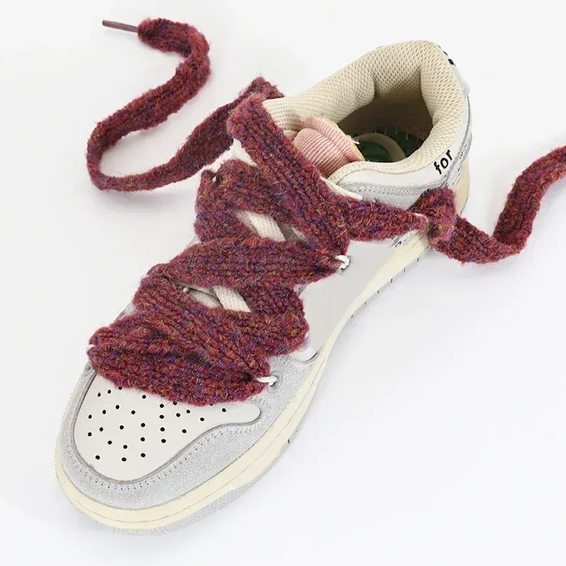 1.8cm Wide Flat Plush Big Fat Single-layer Colorful Mohair Shoelaces Fluffy Fuzzy Sneaker Laces for Women Lady Shoes Accessories