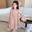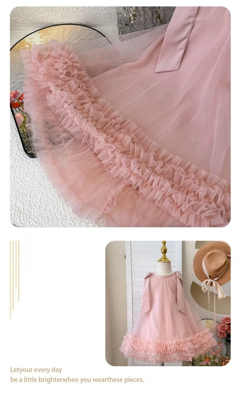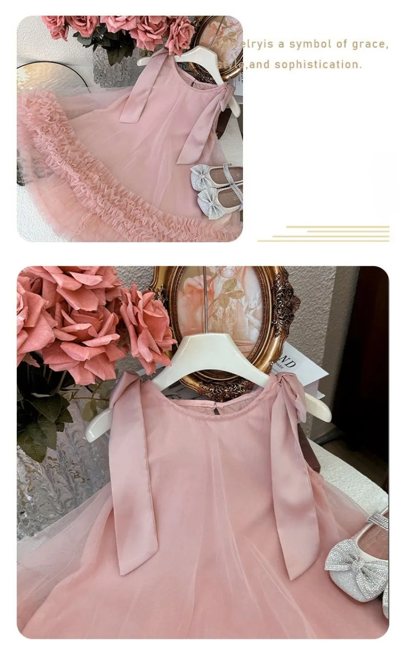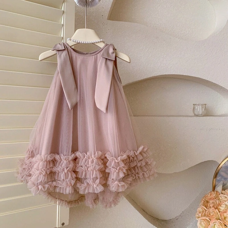 1-8Y Girls' Dress 2025 Summer New Stylish Children's Skirt Bow Mesh Princess Birthday Party Dresses Baby Girls Sleeveless Dress